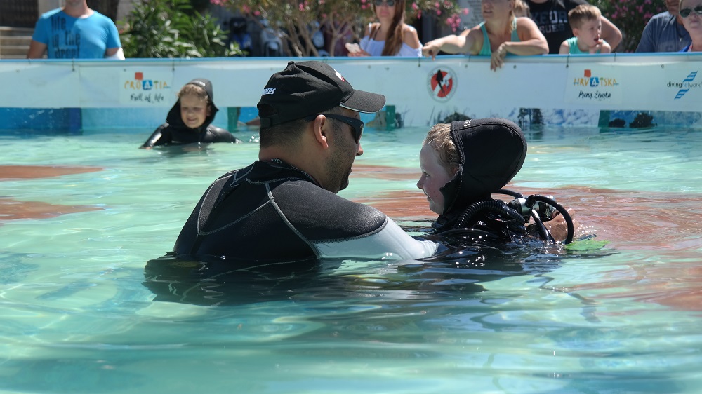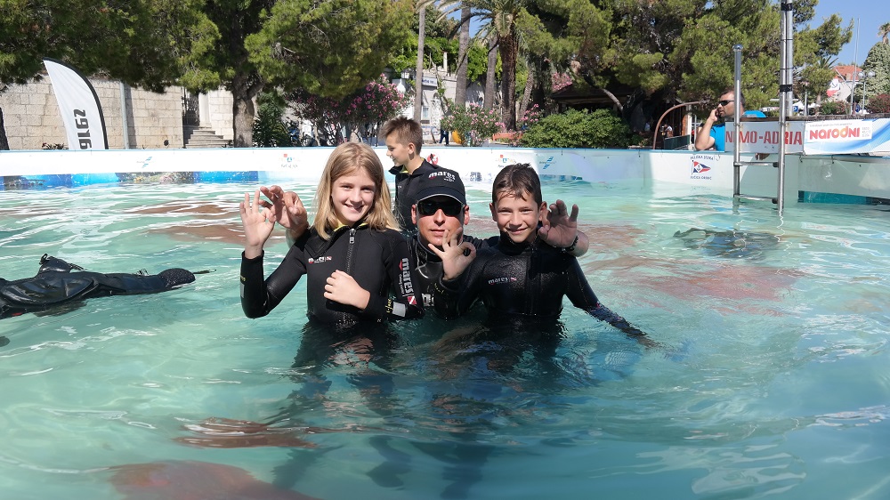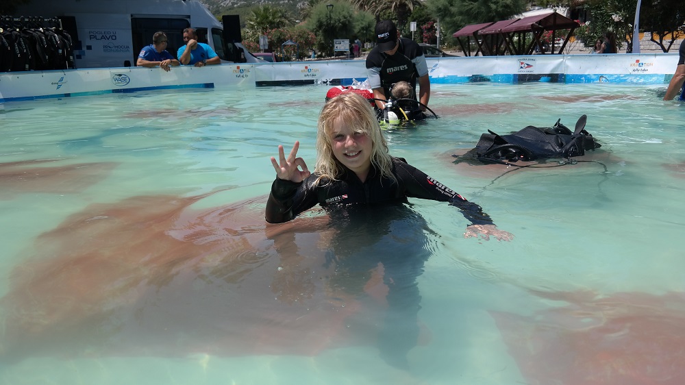 Tijekom uzbudljivog vikenda preko 300 djece zaronilo je besplatno u bazen projekta Pogled u plavo i na zabavan način pod vodom promatrala podvodnu izložbu fotografija ljepota hrvatskog podmorja za koju je zaslužan poznati hrvatski podvodni fotograf Marjan Radović.