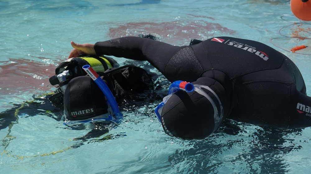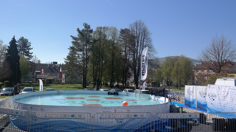 Svi zainteresirani posjetitelji dobili su priliku tijekom dva dana besplatno zaroniti pod punom ronilačkom opremom i uz osnovu poduku o tehnikama ronjenja zaroniti u bazen projekta Pogled u plavo uz sigurnost instruktora ronjenja ronilačkog kluba DPS Zagreb i instruktora ronjenja Nemo Adria Rescue Teama koji su ujedno i članovi Specijalističke ronilačke postrojbe Grada Zagreba za spašavanje iz vode pri Uredu za upravljanje u hitnim situacijama.